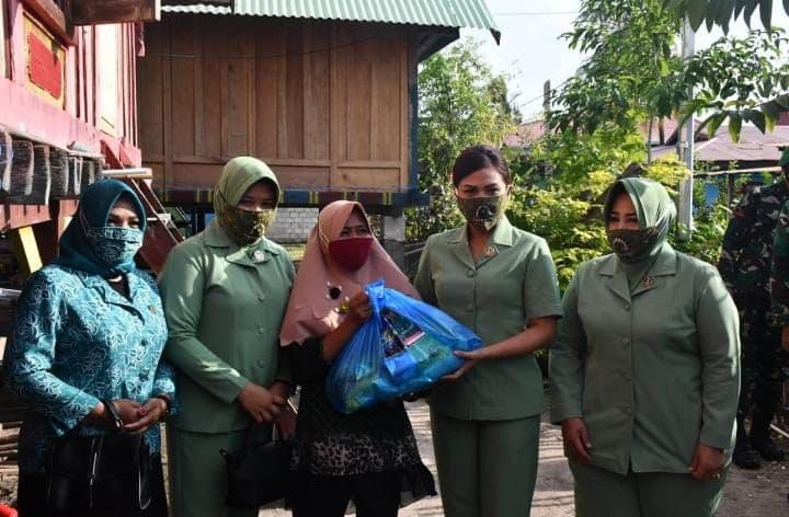 Dijelaskan Kapenrem, pembagian paket bantuan berupa Natura dari Pangdam XIV/Hsn tersebut dibagikan oleh Ketua Persit KCK Koorcab Rem 143 Ny Vera Jannie A Siahaan .