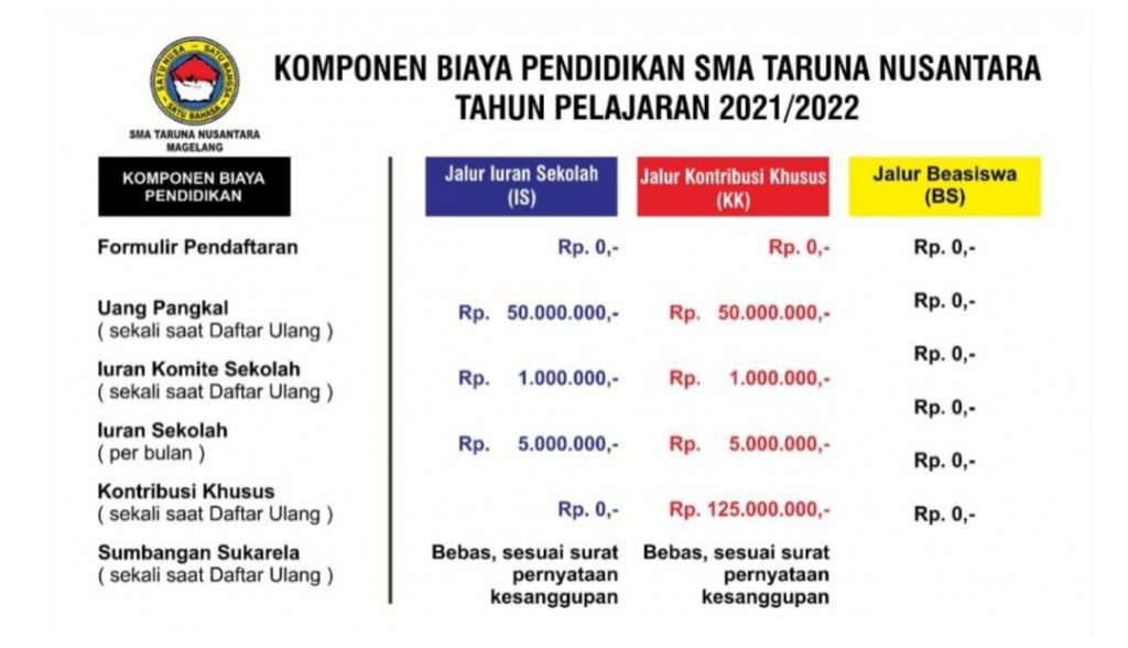 SMA TN, Sekolah Unggulan dari Magelang ARTIKEL Oleh: Penrem 143/HO 14 Maret 2021 Dibaca: 1520 FacebookTwitterPinterestWhatsApp Biaya Seluruh proses seleksi TIDAK DIPUNGUT BIAYA. Biaya Operasional Pendidikan FacebookTwitterPinterestWhatsApp TERPOPULER BERITA Danrem 143/HO/Pimpin Upacara Puncak Peringatan HUT TNI Ke-79 Di Prov.Sultra BERITA Dukungan Ketahanan Pangan, Pasi Teritorial Kodim 1417/Kdi Hadiri Kegiatan Panen Raya Padi Sekolah Lapangan Iklim Operasional BERITA Danrem 143/HO Pimpin Sertijab, Penyerahan Tugas Pejabat Korem 143/HO dan Tradisi Lepas Sambut Personel Korem 143/HO BERITA Koramil 1417-07/Sampara Manunggal Bersama Rakyat Dalam Giat Karya Bakti HUT Ke-79 TNI Tahun 2024 BERITA Pimpin Upacara Kenaikan Pangkat Periode 1 Oktober 2024, Danrem 143/HO : Jadilah Prajurit Yang Berinovasi dan Dicintai Rakyat BERITA TERKAIT BERITA Danrem 143/HO/Pimpin Upacara Puncak Peringatan HUT TNI Ke-79 Di Prov.Sultra Kendari – Dalam rangka memperingati Hari Ulang Tahun (HUT) Tentara Nasional Indonesia (TNI) ke-79 Komandan Korem 143/HO Brigjen TNI... BERITA Dukungan Ketahanan Pangan, Pasi Teritorial Kodim 1417/Kdi Hadiri Kegiatan Panen Raya Padi Sekolah Lapangan Iklim Operasional Kendari _ Perwira seksi Teritorial Kodim 1417/Kendari Kapten Inf Salmar menghadiri kegiatan panen Raya padi (Sekolah Lapangan Iklim Operasional),... BERITA Danrem 143/HO Pimpin Sertijab, Penyerahan Tugas Pejabat Korem 143/HO dan Tradisi Lepas Sambut Personel Korem 143/HO Kendari – Komandan Korem 143/HO Brigjen TNI R Wahyu Sugiarto S.I.P.,M.Han memimpin acara serah terima jabatan, penyerahan tugas pejabat... BERITA Koramil 1417-07/Sampara Manunggal Bersama Rakyat Dalam Giat Karya Bakti HUT Ke-79 TNI Tahun 2024 Konawe _ HUT TNI ke-79 banyak memberikan manfaat dan meringankan beban bagi masyarakat di wilayah binaan, seperti yang dilakukan...
