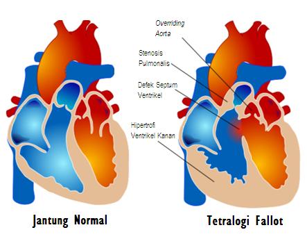 Tetralogi of Fallot (TOF) berarti terdapatnya empat kelainan pada jantung berupa: