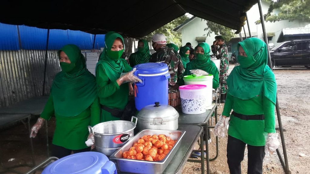 Terpisah, saat ditemui di lokasi memasak bahan makanan, Dandenbekang Kendari (Mayor Cba Hamonangan Simanjuntak) katakan bahwa untuk pengolahan makanan di dapur lapangan sangat praktis dan dibantu ibu -ibu Persit.