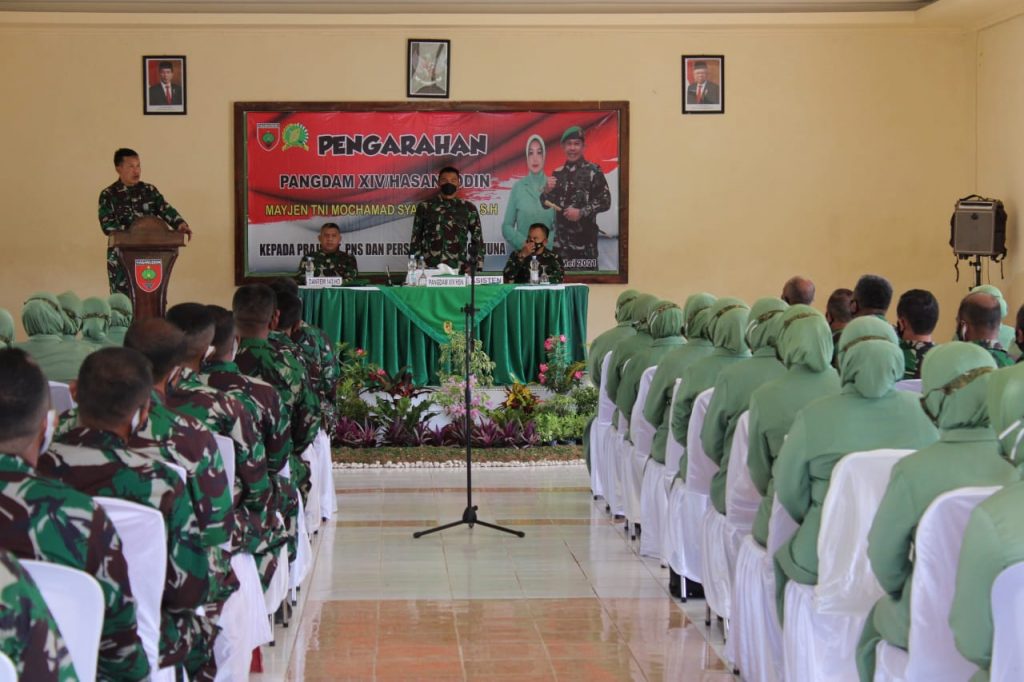 Dihadapkan dengan Pandemi COVID 19, Pangdam menyampaikan agar seluruh prajurit, PNS dan anggota Persit KCK Cabang XLIX Kodim1416/Muna menjaga kondisi fisiknya serta bijak dalam menggunakan media sosial.