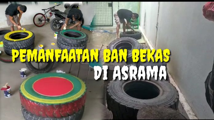 - Setelah dikumpulkan, ban bekas dicuci supaya tidak menempel kotoea yang dapat menghalangi proses pengecatan.
