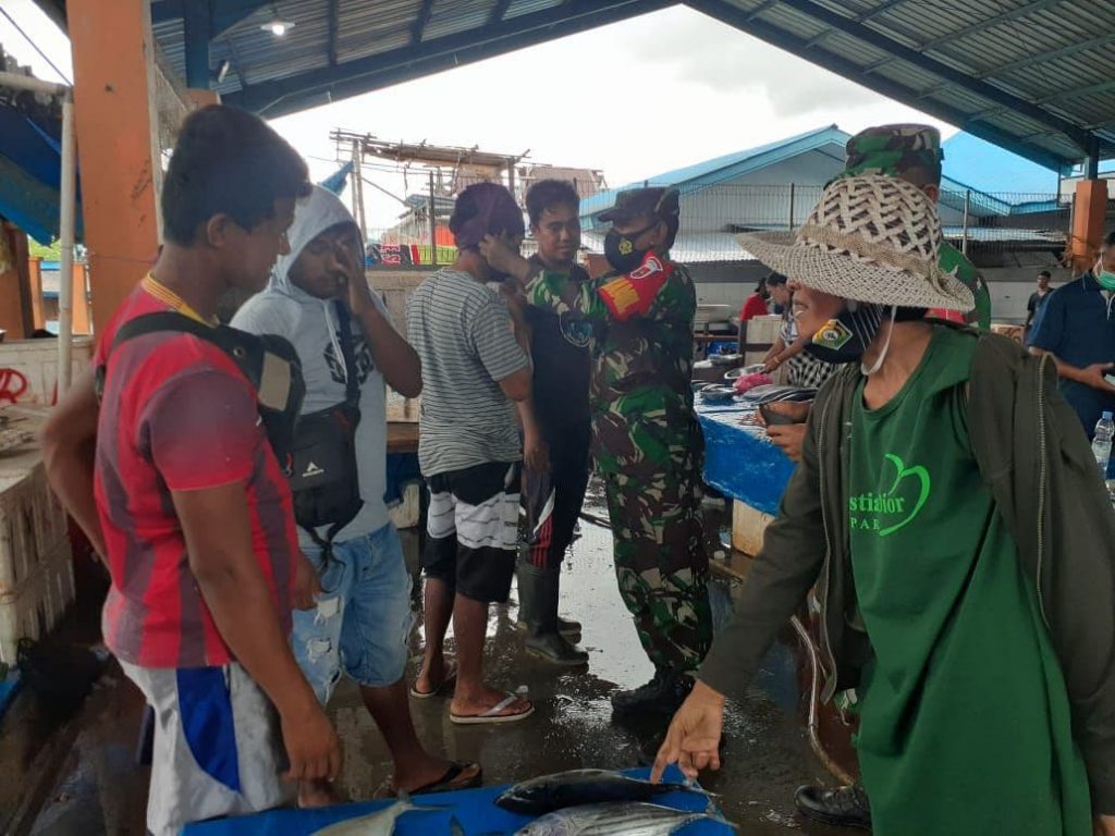Untuk diketahui dalam patroli itu, para prajurit juga membagikan masker kepada pengunjung dan pedagang ikan yang berada di pelelangan ikan.