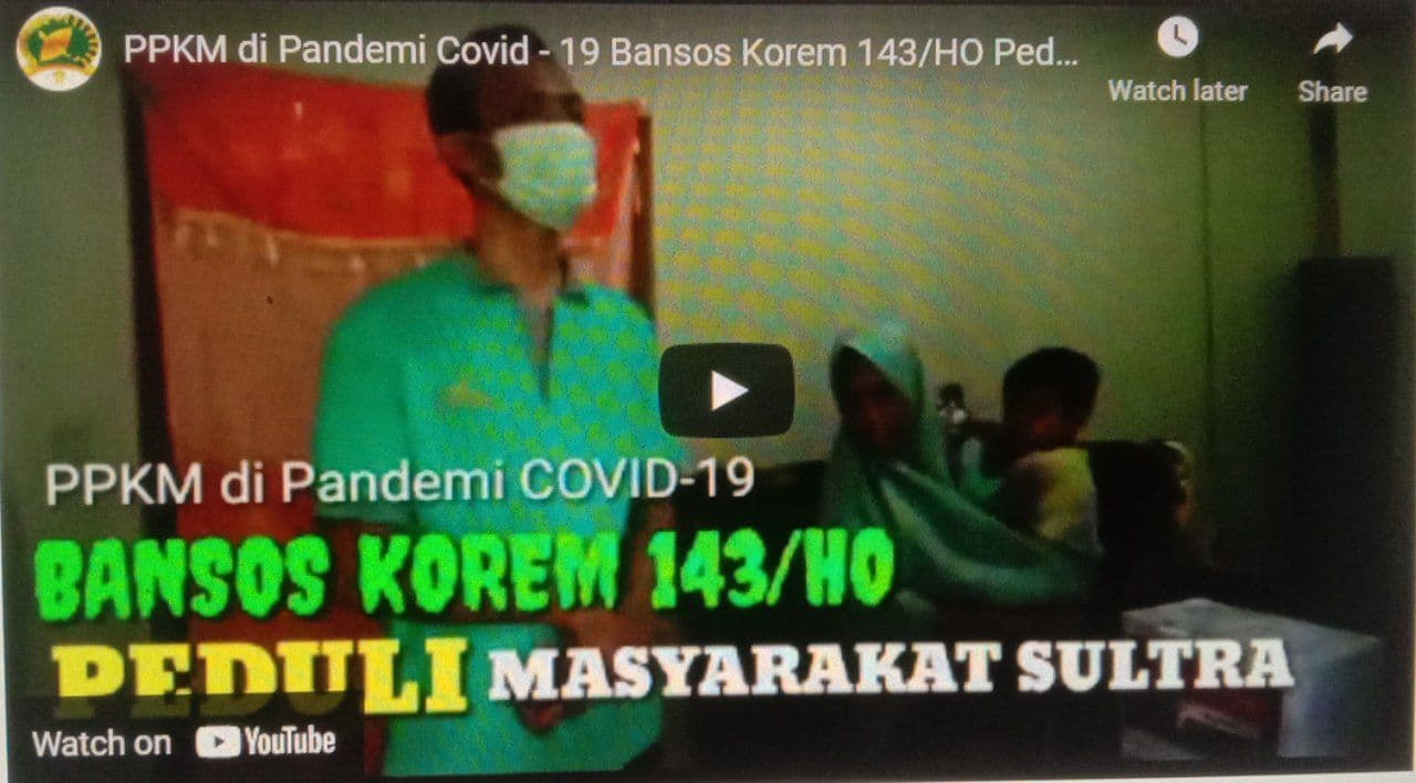 Kendari, korem143.tni-ad.mil.id,- Di tengah Pandemi COVID -19, Korem 143/HO beserta jajaran mendistribusikan 703 paket bantuan sosial (bansos) di Sultra, Rabu (21/7/2021).