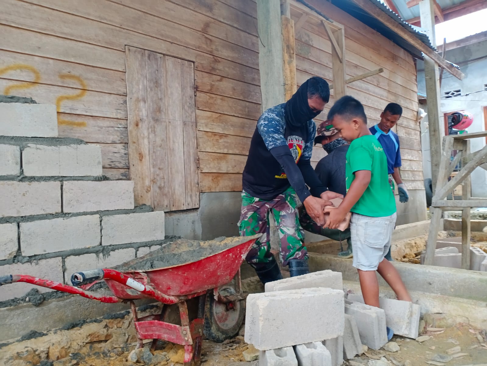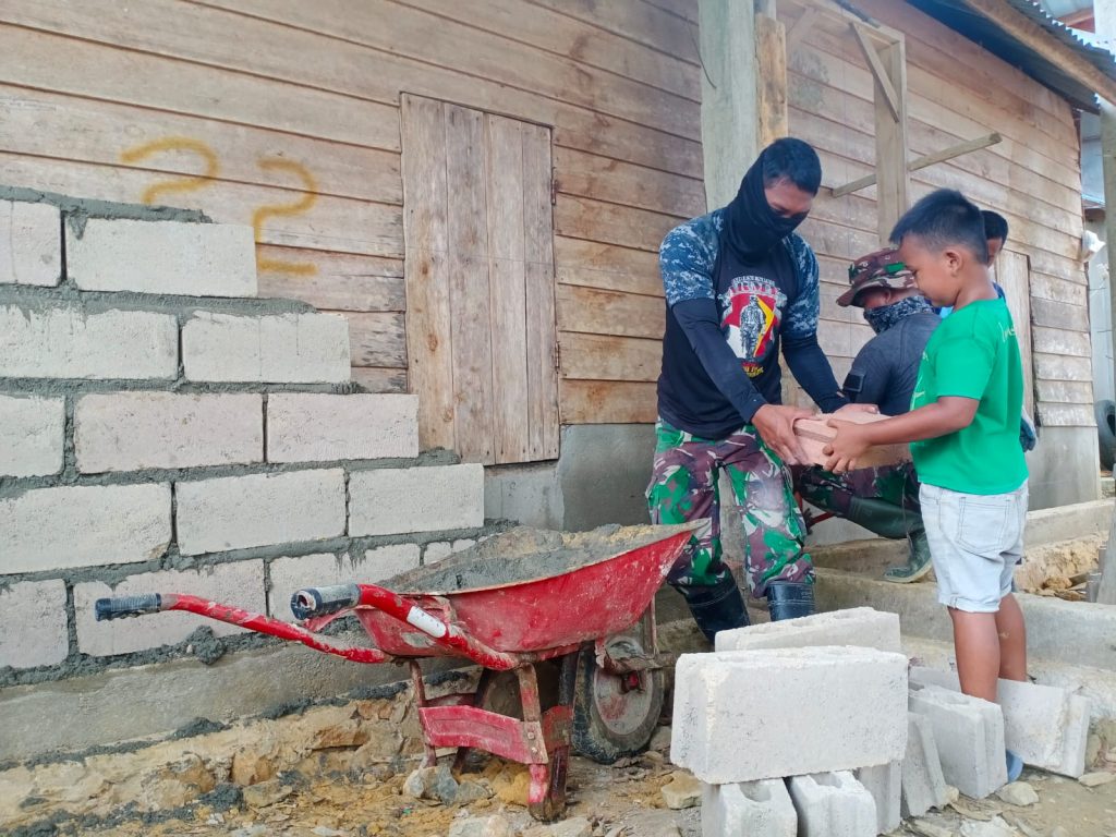 “Dari pantauan, anak-anak membaur bersama anggota Satgas dalam pembangunan rumah tidak layak huni (RTLH), saat bermain, sekalian membantu mengangkat batako di lokasi pembangunan RTLH,” ungkapnya.