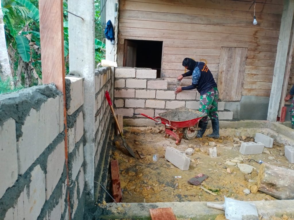 Sementara pembangunan di tempat tersebut, menurut Komandan Regu Sasaran 22 RTLH Serka Akmal, rangka rumah sudah selesai, atap bangunan selesai, tinggal pemasangan batako dan plesteran.