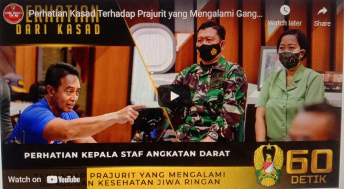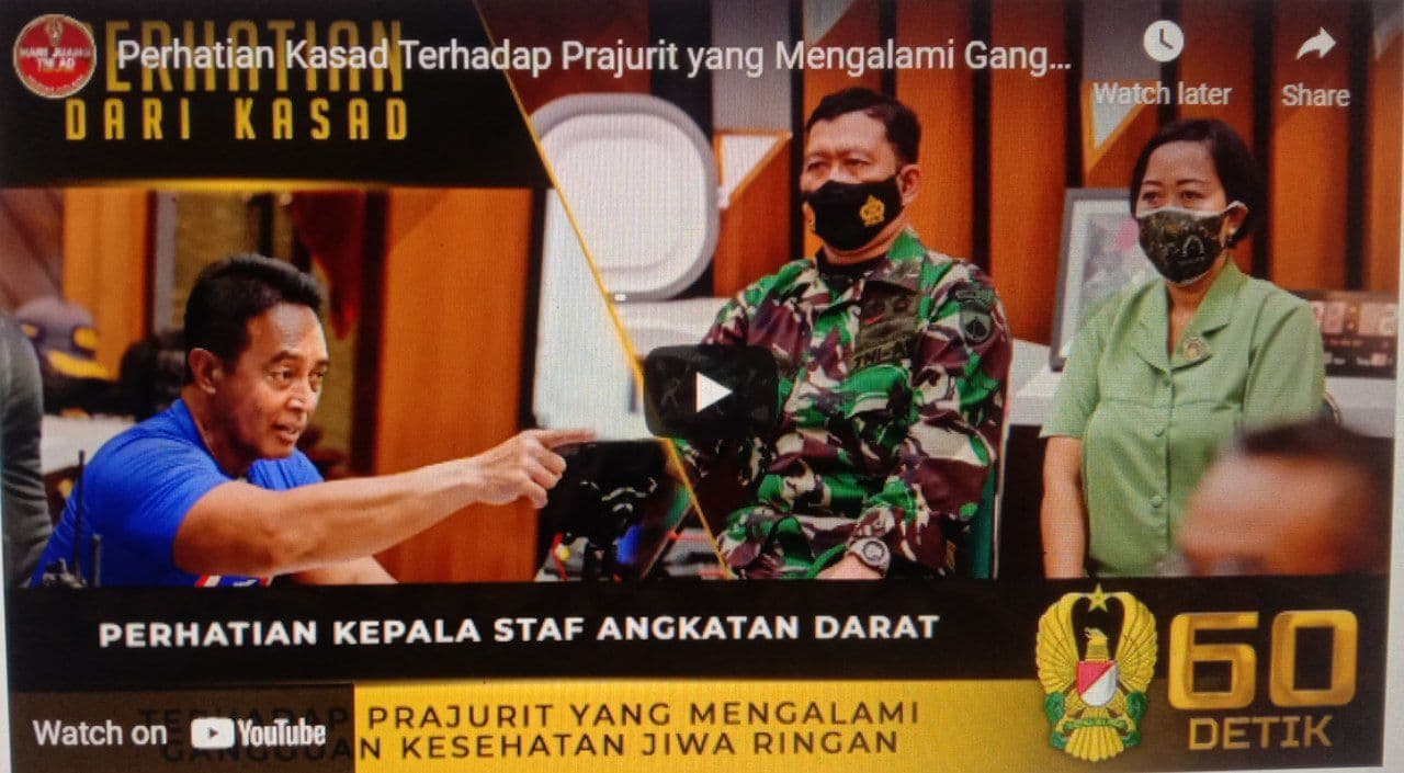 Kepala Staf Angkatan Darat (Kasad), Jenderal TNI Andika Perkasa, bersama jajaran petinggi TNI AD, serta Kepala Dinas Psikologi Angkatan Darat, memanggil dua Prajurit TNI AD yang mengalami gangguan kesehatan ringan, untuk memberikan dukungan serta perhatian sebagai pemimpin.