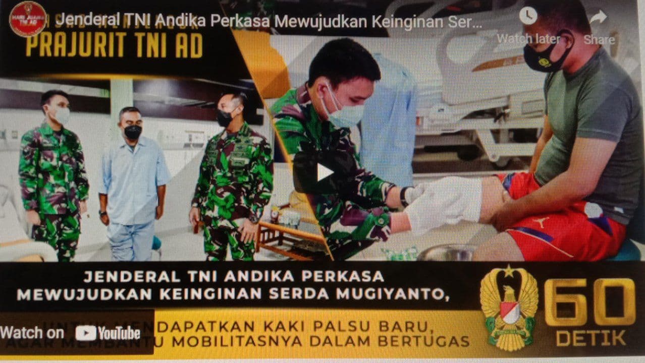 Kepala Staf Angkatan Darat, Jenderal TNI Andika Perkasa mewujudkan keinginan seorang Prajurit TNI AD yang inspiratif, yaitu Sersan Dua (Serda) Mugiyanto anggota Kodim 0705/Magelang. Untuk bisa mendapatkan kaki palsu baru, dikarenakan kaki palsu yang sebelumnya sudah rusak, setelah pemakaian kurang lebih beberapa tahun pemakaian.