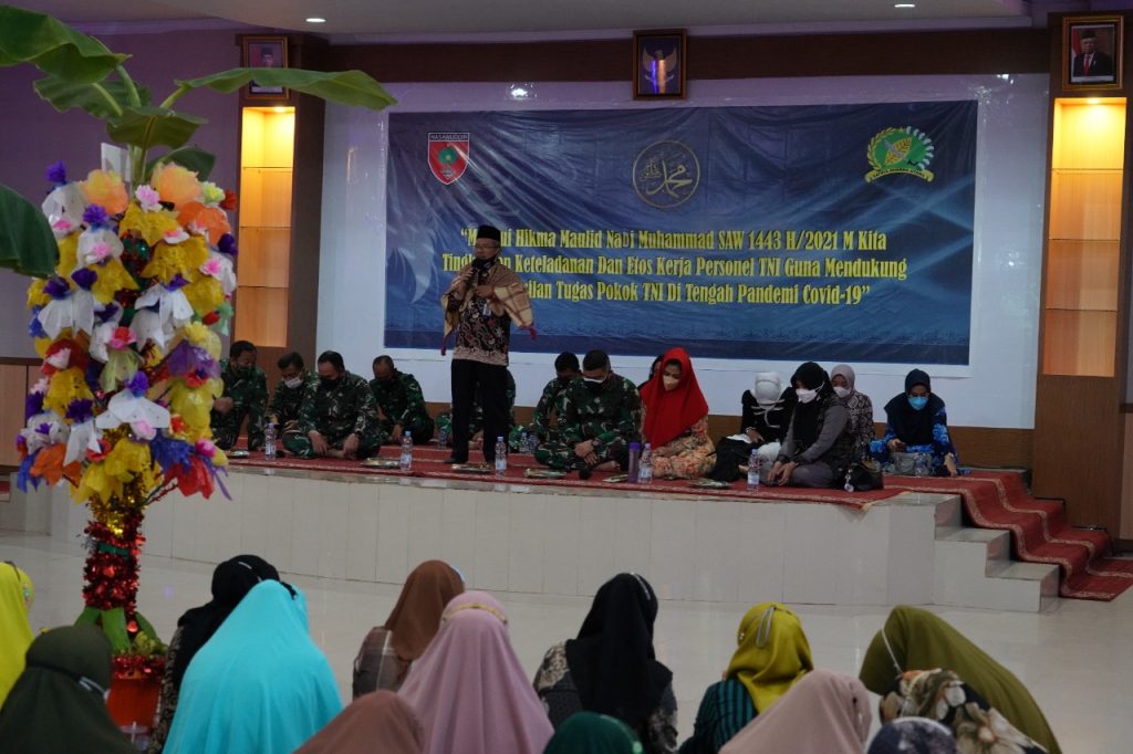 Sementara itu, dalam sambutanya Danrem 143/HO Brigjen TNI Jannie Aldrin Siahaan menyampaikan bahwa peringatan Maulid Nabi Muhammad SAW diharapkan dapat menumbuhkan motivasi baru kepada seluruh prajurit dan keluarganya.