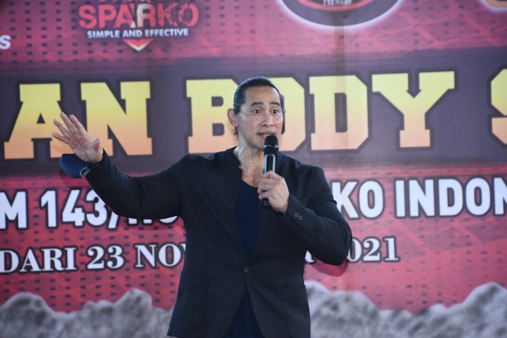 “Kalau kitta berbicara mengenai olah raga kita akan berbicara 2 hal yaitu melatih pengencangan otot jantung dan meletih mengencangkan otot rangka yang biasa dinamakan latihan beban yang dimana dalam olah raga angkat beban ini bukan supaya badan menjadi besar tetapi jika otot dikencangkan maka yang terasa adalah tulang sehingga tulangnya kuat geraknya normal dan lemaknya juga rendah ciptakan lingkungan hidup yang sehat, kurangi lemak dan naikan otot,” sambungnya.
