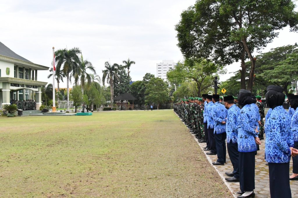 Rangkaian kegiatan Upacara Bendera dan Jam Komandan yang dilaksanakan di Lapangan Upacara Makorem 143/HO, Kota Kendari, Sultra ini dilaksanakan sesuai dengan protokol kesehatan tentang Covid 19.