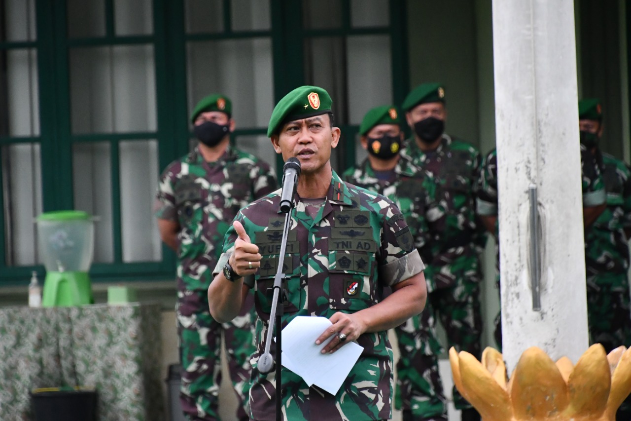 “Untuk itu sebagai Prajurit kita harus laksanakan tugas secara profesional sesuai dengan tugas pokok dengan mengimplementasikan Sapta Marga, Sumpah Prajurit dan Delapan Wajib TNI dimanpun bertugas dan berada,” tegasnya mengutip amanat KSAD.