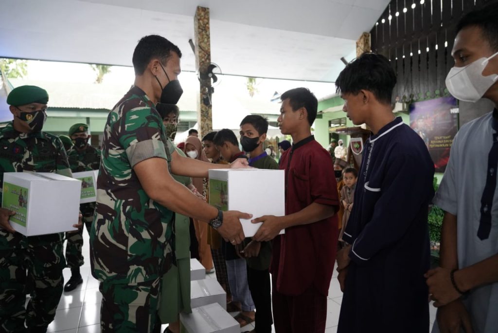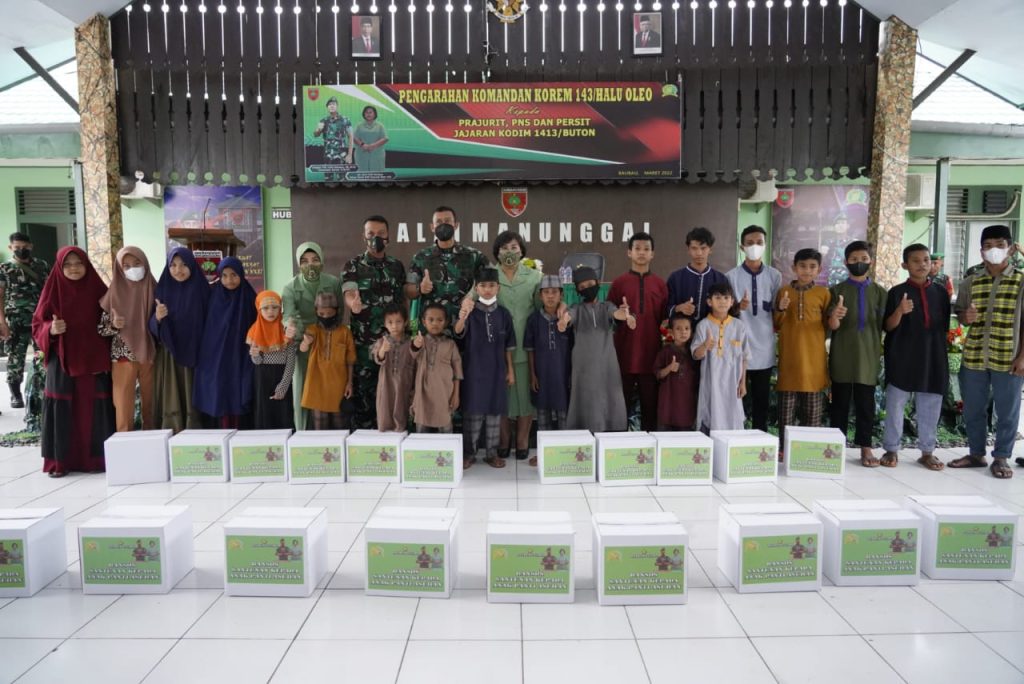 Selain memberi pengarahan kepada personel Kodim 1413/Buton, Danrem juga memberikan bantuan kepada anak Panti Asuhan Madinatul Qur’an berupa Sembako.