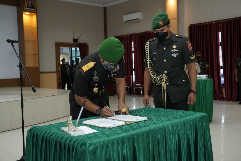 Kendari – Komandan Korem 143/HO Brigjen TNI Yufti Senjaya S.E.,M.Si didampingi Ketua Persit KCK Koorcab rem 143 PD XIV/Hasanuddin memimpin acara penyerahan jabatanDandim 1417/Kendari dan serah terima jabatan Dandim 1416/Muna serta tradisi Korem 143/HO di Aula Sudirman Senin 8 Agustus 2022.