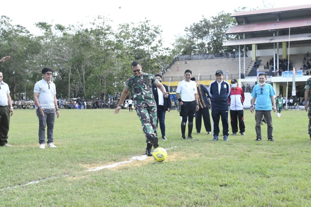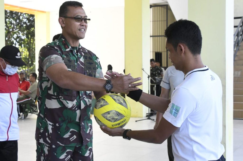 Kendari – Danrem 143/HO Brigjen TNI Yufti Senjaya S.E,.M.Si resmi membuka sepak bola Liga Santri piala Kasad tingkat Provinsi Sultra di Lapangan Sepak Bola Mini Kampus Halu Oleo.