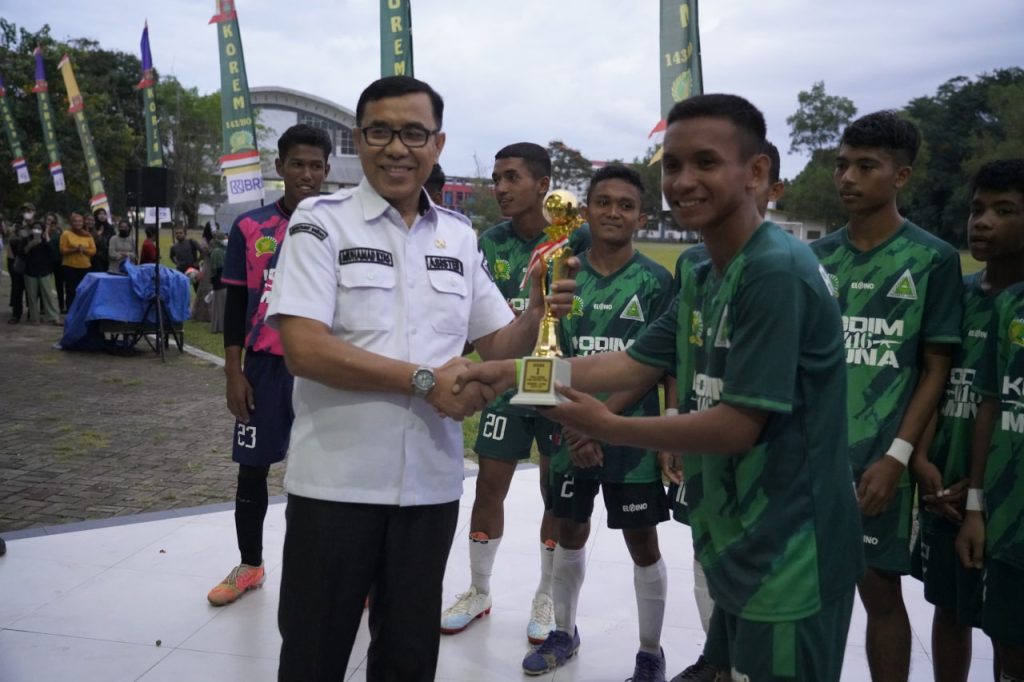 Setelah selesai melaksanakan penutupan yang di tutup oleh Bapak Laode Songko Panatagama (Perwakilan Komite PSSI Sultra) dilanjutkan dengan penyerahan piala serta uang pembinaan kepada tim yang menang.