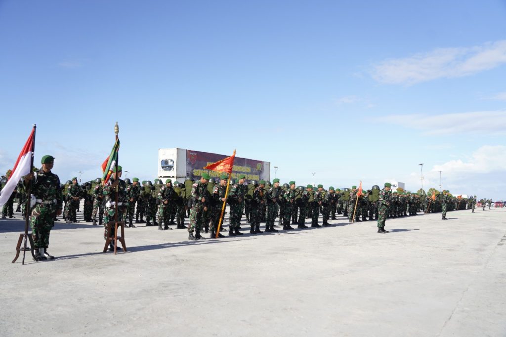 “Hari ini bapak Danrem 143/HO melepas 450 Prajurit Yonif 725/Woroagi yang akan bertugas di perbatasan RI-PNG di sektor selatan selama 9 bulan yang akan berangkat besok pagi pukul 07:00 Wita menggunakan KRI Banjarmasin bersama sama dengan Yonif 511/Dibyatara Yodha (Badak Hitam) dan Yonif 305/Tengkorak,”ujar rusmin.