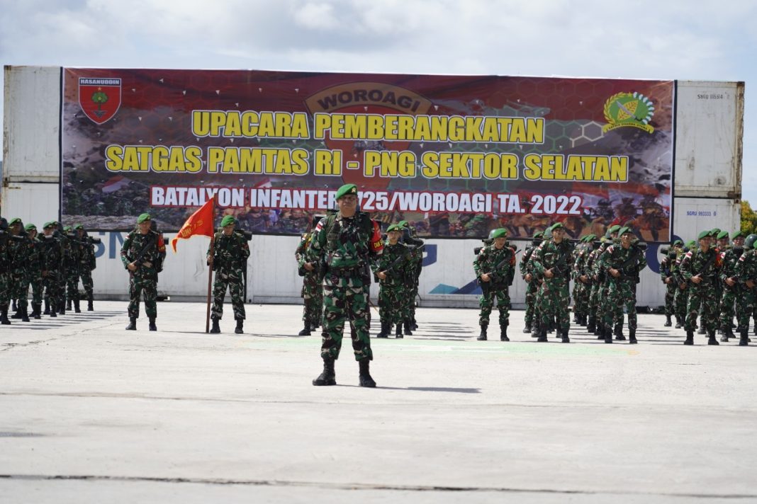 “Hari ini bapak Danrem 143/HO melepas 450 Prajurit Yonif 725/Woroagi yang akan bertugas di perbatasan RI-PNG di sektor selatan selama 9 bulan yang akan berangkat besok pagi pukul 07:00 Wita menggunakan KRI Banjarmasin bersama sama dengan Yonif 511/Dibyatara Yodha (Badak Hitam) dan Yonif 305/Tengkorak,”ujar rusmin.
