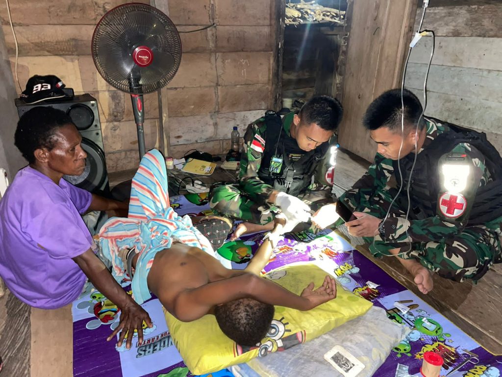 “Minggu malam, (18/9) kurang lebih pukul 22.20 WIT, Ibu Veronika mendatangi Pos Koki A/Kanggewot Satgas Yonif 725/Woroagi dengan maksud meminta bantuan tim kesehatan untuk memeriksa anaknya yang bernama Isak (13) yang terbaring sakit di kediamannya”, ungkap Reynald.