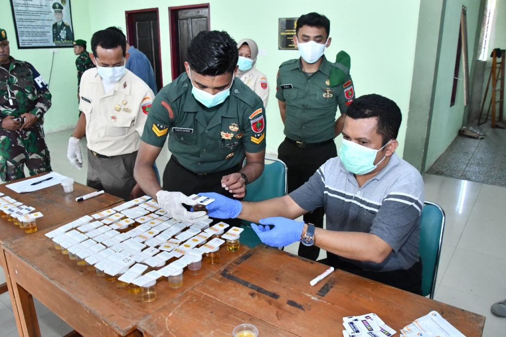 Kasi Intel Kasrem 143/HO menegaskan, bahwa apabila dalam uji sampel urine tersebut terdapat anggota yang terbukti positif mengkonsumsi narkoba maka akan langsung ditindak tegas dan diproses sesuai aturan dan hukum yang berlaku.