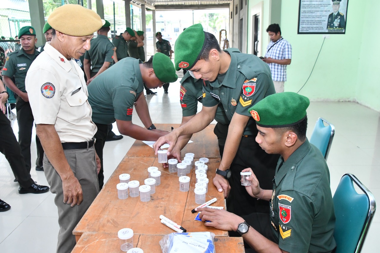Namun untuk tes urine saat ini di tunjuk secara acak dan tanpa adanya pemberitahuan kepada Prajurit dan PNS jajaran korem 143/HO serta diberikan pemahaman terhadap bahayanya penyalahgunaan narkoba.