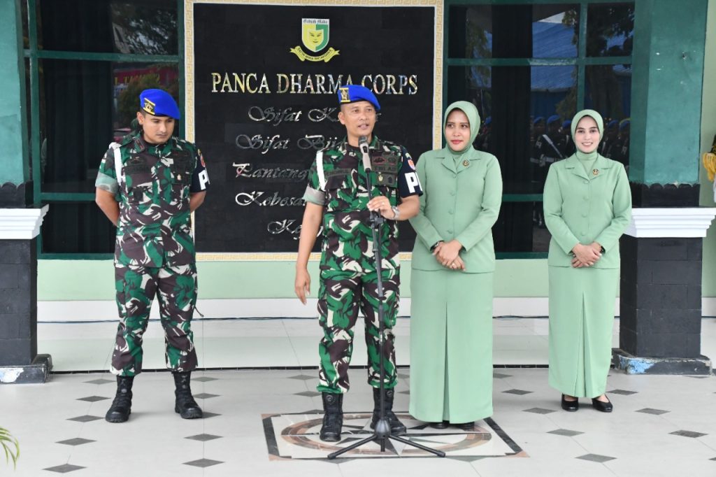 “Pertama-tama saya mengucapkan terima kasih kepada seluruh rekan prajurit, PNS dan ibu ibu Persit yang telah menyambut kami, serta kami juga berharap bantuannya selama kami bertugas disini,” ujarnya