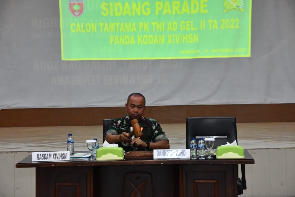 Sebelum membuka sidang parade Kasdam XIV/Hasanuddin menyampaikan bahwa sidang Parade merupakan seleksi lanjutan untuk memilih calon yang memenuhi syarat untuk mengikuti seleksi tingkat pusat di Rindam XIV/Hasanuddin.