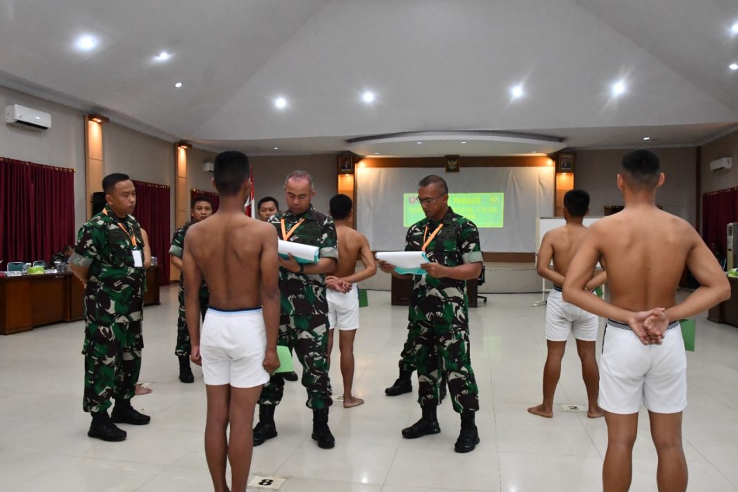 Kendari – Kepala Staf Komando Daerah Militer XIV/Hasanuddin Brigjen TNI Dany Budiyanto, S.E.,M.(Han) didampingi Kaajendam XIV/Hasanuddin Kolonel Caj Prabadi Nurgiancandra, S.Sos., M.Tr.(Han) memimpin Sidang Parade Sub Panda Kendari penerimaan calon Tamtama PK TNI AD Reguler Gelombang II TA 2022 di Aula Sudirma Korem 143/HO, Senin (31/10/2022).