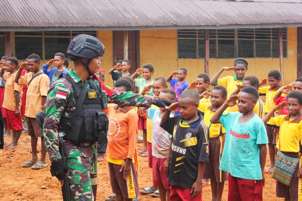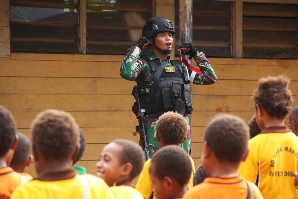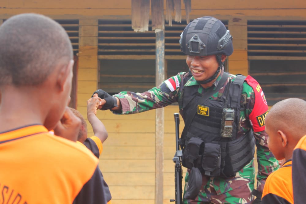 Di lain tempat, Dansatgas Yonif 725/Woroagi Letkol Inf Syafruddin Mutasidasi, S.E., mengungkapkan bahwa seluruh jajaran Pos Satgas Yonif 725/Woroagi akan terus membantu Pemerintah dalam meningkatkan kualitas pendidikan.