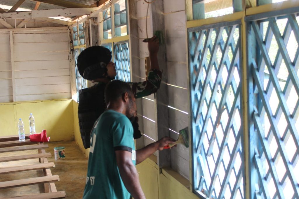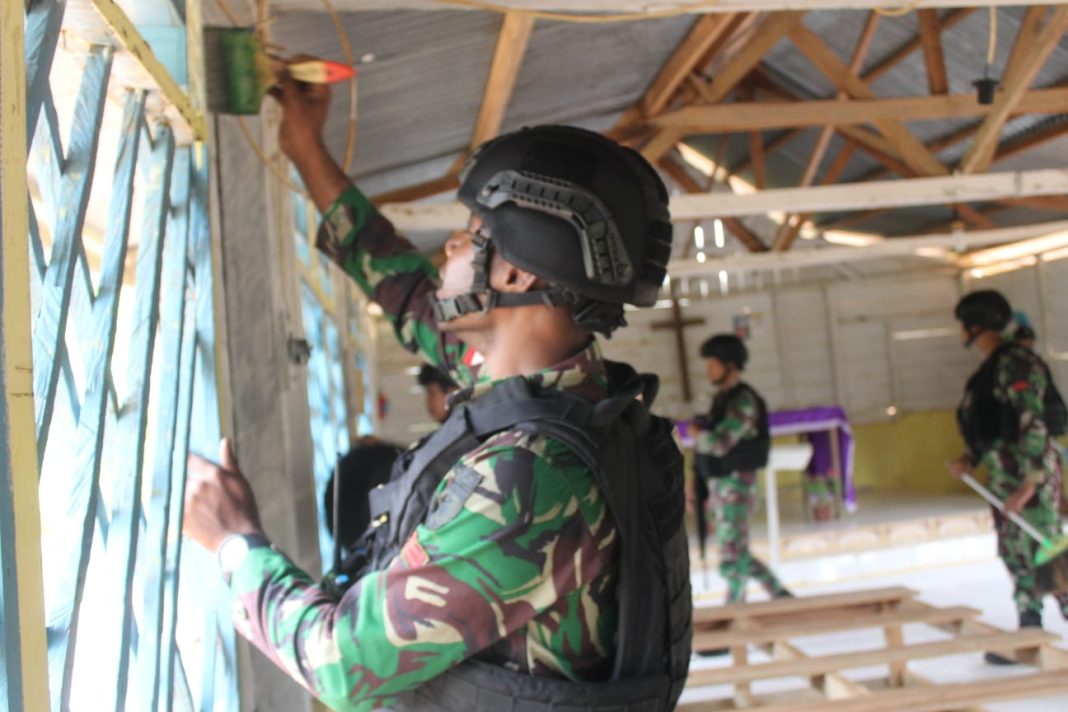 Pos Koki B/Mindiptana menyiapkan 9 orang dengan Sertu Gana sebagai Dantim untuk melaksanakan Pengecetan di Gereja Katolik Santo Yohanes, Agar mereka (Jemaat Kp. Andokbit) dapat lebih merasakan suasana yang nyaman saat melaksanakan ibadah di Gereja Santo Yohanes.