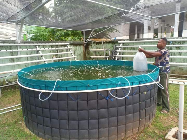 Sistem Bioflok ini bukan hanya ikan Nila tetapi ikan air tawar lainnya Bisa dan untuk pengambilan bibitnya langsung di Ngkari Kari dan dalam satu kolam bisa menampung 1500 ekor ikan,”ujarnya