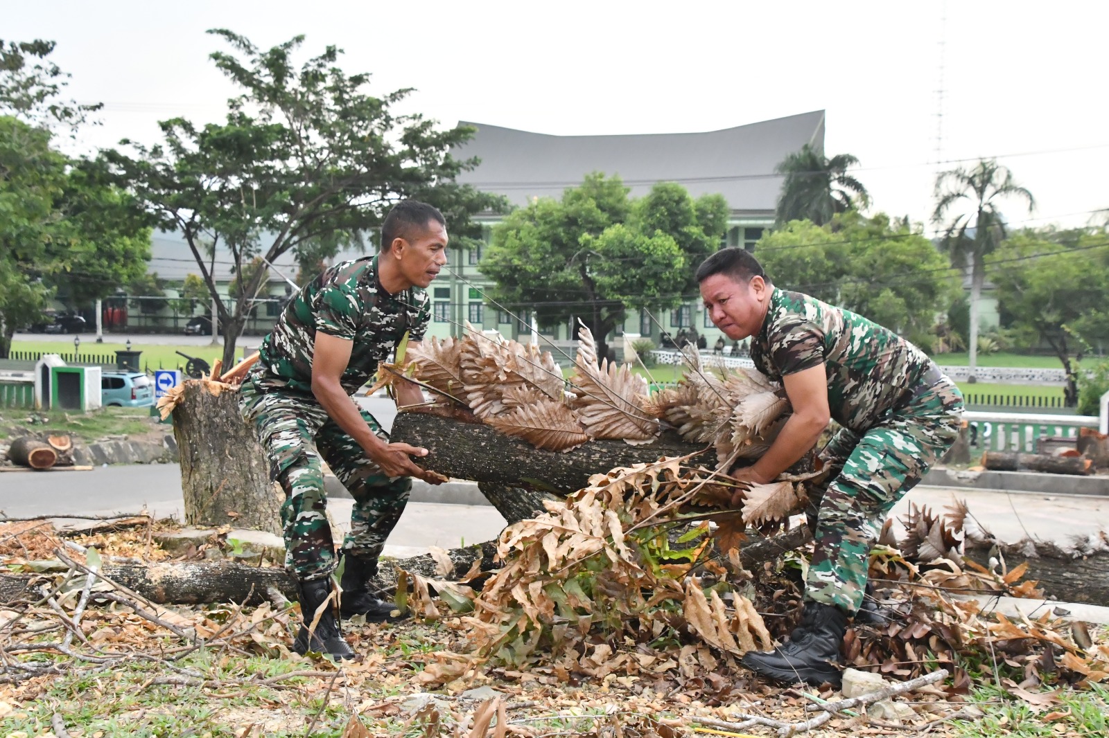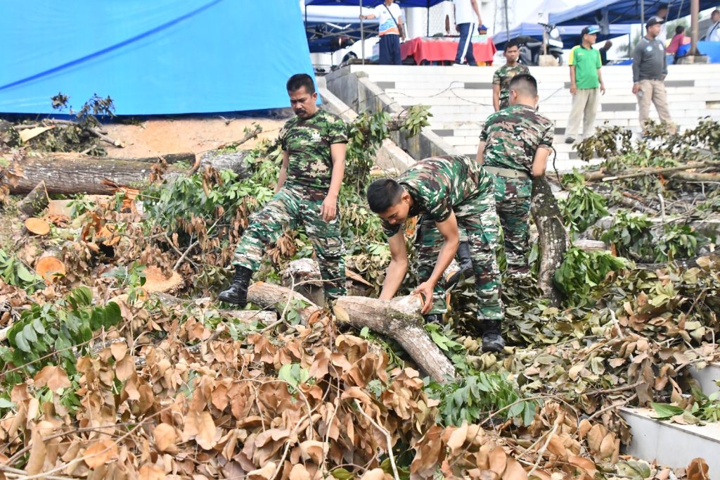 “Kita disini bersama sama masyarakat membersihkan pelataran masjid Raya Al-Kautsar dari ranting dan juga dedaunan pohon yang telah ditebang beberapa waktu lalu agar tempat parkir ini bisa digunakan kembali,”ucapnya