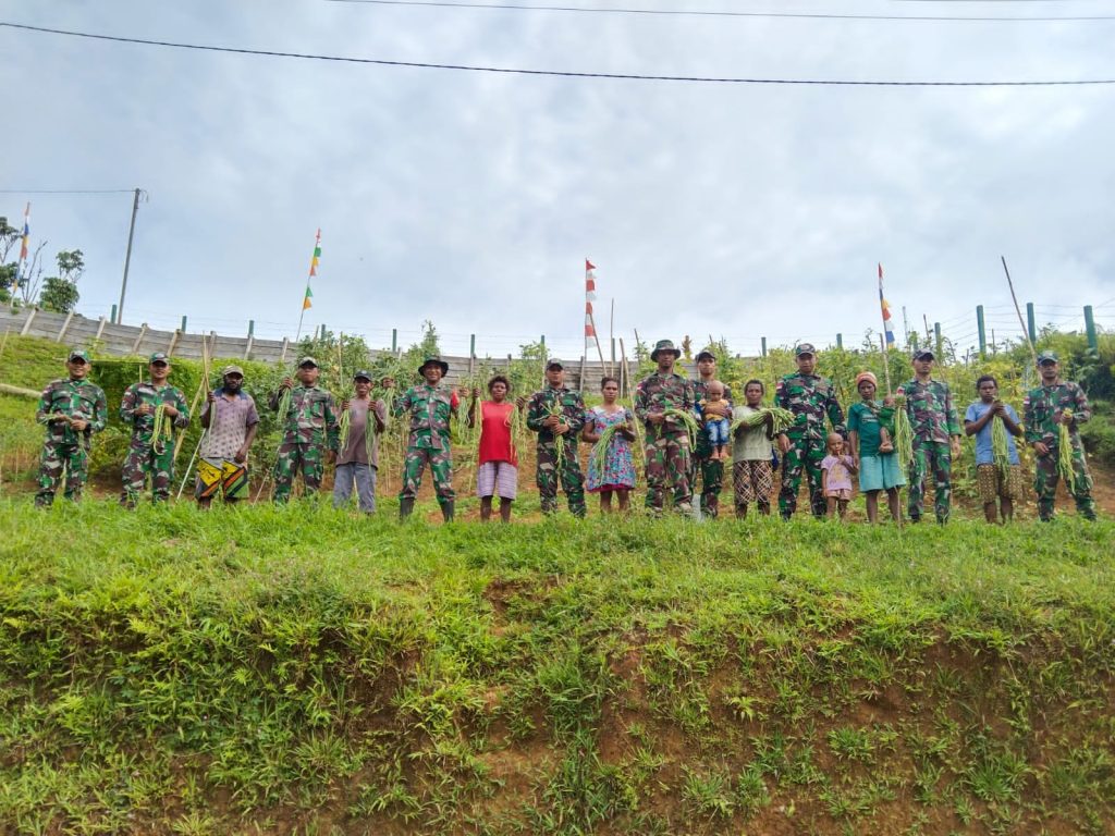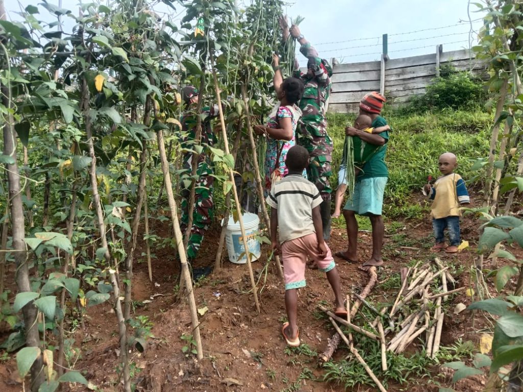 Boven Digoel – Guna mendukung ketahanan pangan sekaligus meningkatkan perekonomian warga sekitar, Satgas Yonif 725/Wrg Pos Ninatie yang berada di bawah naungan Kolakops Korem 174/ATW menggelar panen bersama masyarakat Kp. Ninatie, Distrik Ninatie, Kab. Boven Digoel. Senin, (20/2/2023).