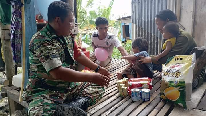 Busel – Sebagai implementasi 6K Babinsa Koramil 1413-09/Batauga Sertu La Ode Mustafa melaksanakan Jumat Berkah Kepada Anak Asuh Danramil 1413-09/Btg Penderita Stunting di Desa Uwemaasi Kec.Kadatua Kab.Buton Selatan,Juma,t(24/02/2023)