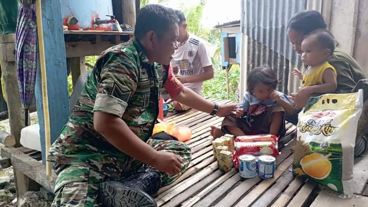Busel – Sebagai implementasi 6K Babinsa Koramil 1413-09/Batauga Sertu La Ode Mustafa melaksanakan Jumat Berkah Kepada Anak Asuh Danramil 1413-09/Btg Penderita Stunting di Desa Uwemaasi Kec.Kadatua Kab.Buton Selatan,Juma,t(24/02/2023)