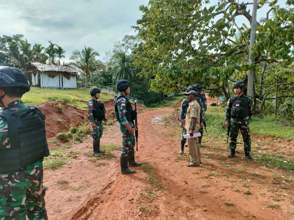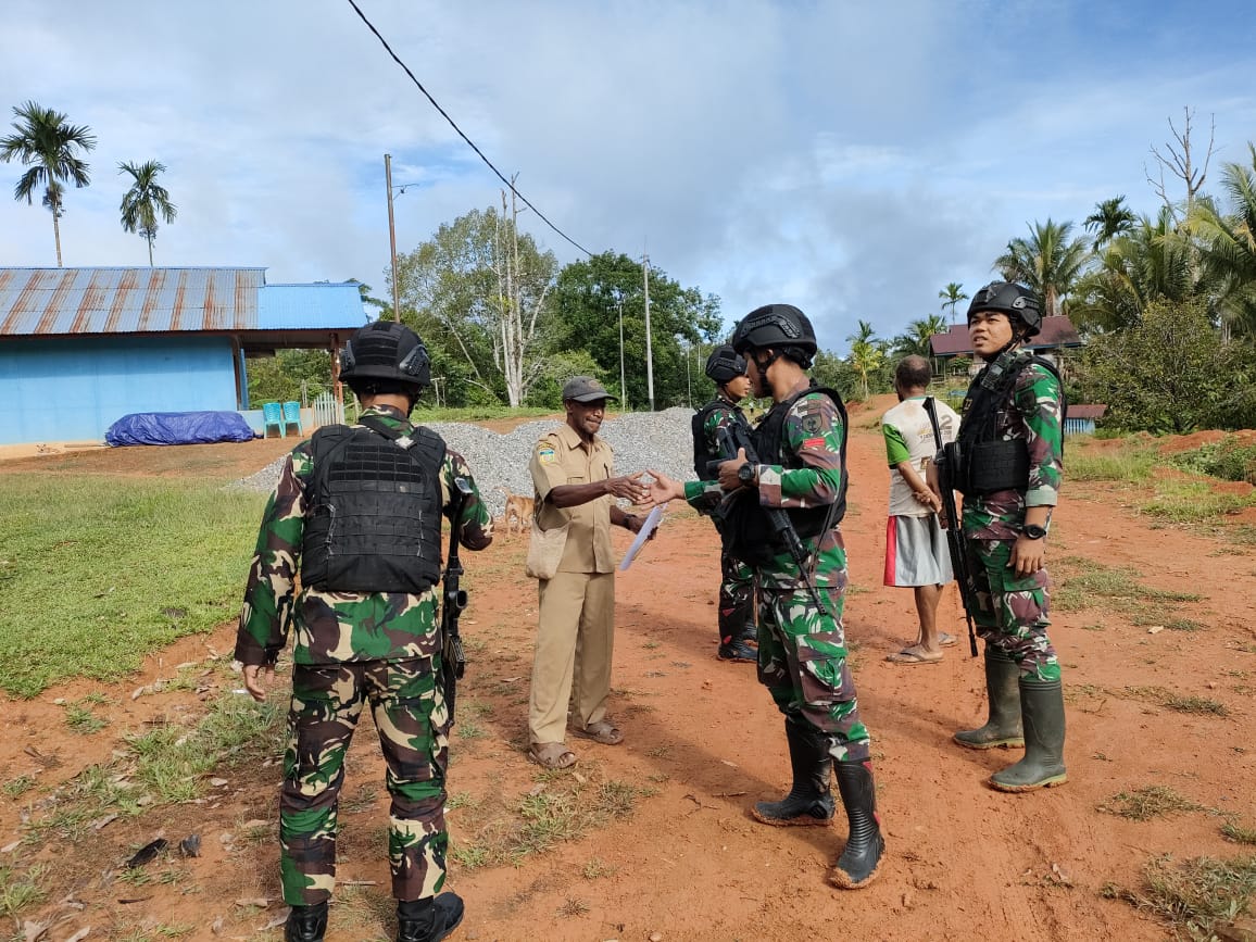 Boven Digoel – Anggota Satgas Pamtas RI-PNG Yonif 725/Wrg dibawah naungan Kolakops Korem 174/ATW melalui Pos 1 B/ Amuan melaksanakan silaturahmi dengan masyarakat, sebagai bentuk perhatian kepada masyarakat binaan, Kp. Amuan, Distrik Kombut, Kab. Boven Digoel, Papua Selatan. Rabu, (1/3/2023).