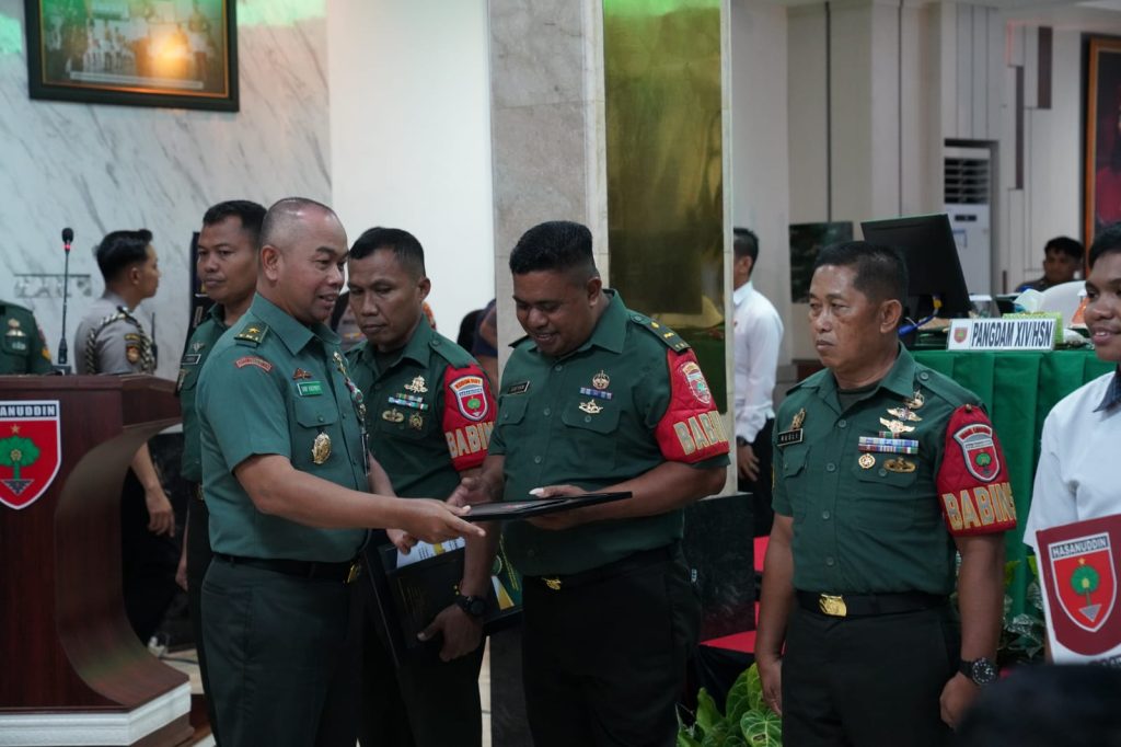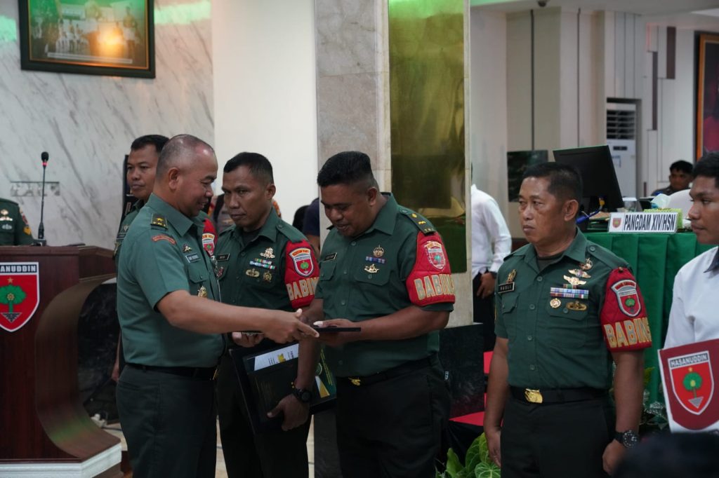 Pangdam XIV/Hsn menghimbau kepada Babinsa yang menerima penghargaan itu, ” Tetap semangat, jangan kendor, jangan ragu berbuat kebaikan demi masyarakat banyak, bangsa dan negara. Kita berharap, seluruh Babinsa dapat termotivasi melakukan pekerjaan dengan baik, sehingga kemanunggalan TNI dan Rakyat semakin terlihat dan ingat Jiwai semangat 6K Di Hati Kita dalam setiap melaksanakan tugas” imbuhnya.