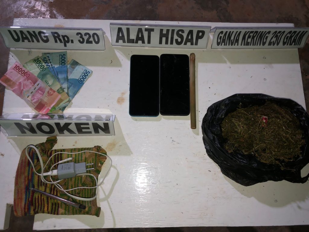 Untuk diketahui kedua pelaku berinisial “K” (18) status pelajar dan “J” (17) status Pekerja Aspal Kombut. Mereka mengaku bahwa baru saja melakukan transaksi jual beli ganja dari salah satu warga PNG.