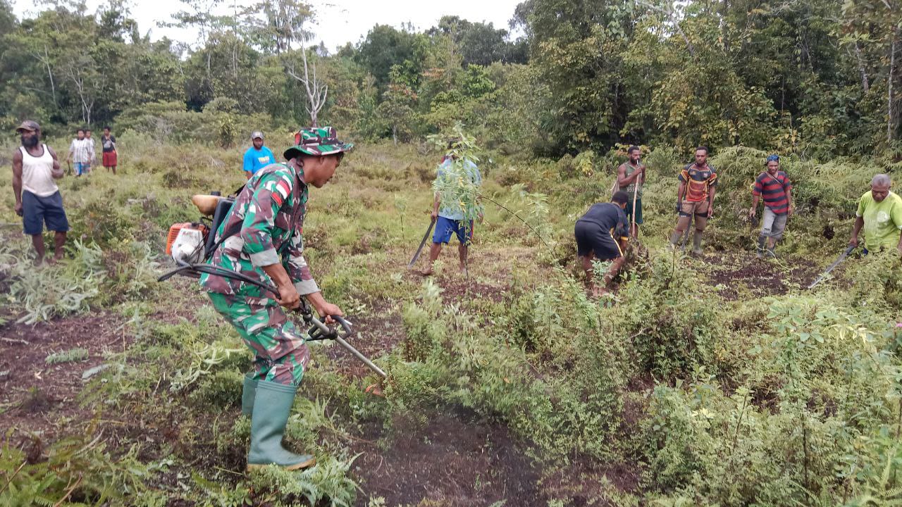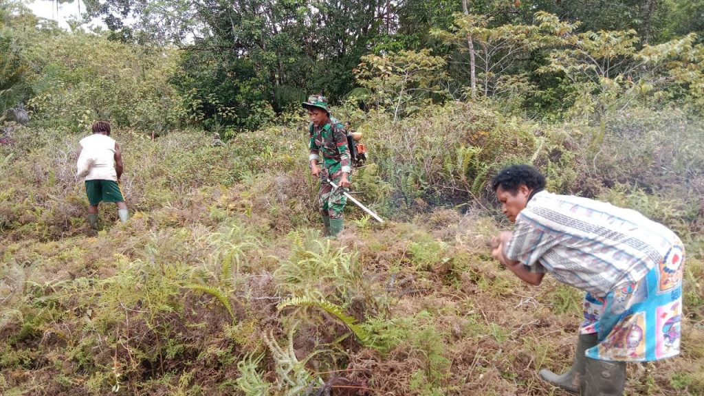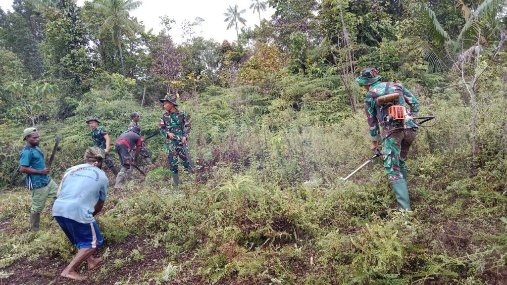 Satgas Pamtas RI-PNG Yonif 725/Woroagi yang berada di bawah naungan Komando Korem 174/ATW, Pos Kombut bersama masyarakat di perbatasan melaksanakan Karya Bakti rutin yang dilaksanakan setiap hari jum’at dalam rangka menjaga kebersihan di lingkungan Kampung Kombut, yang dilaksanakan di Kampung Kombut, Distrik Kombut, Kab. Boven Digoel.