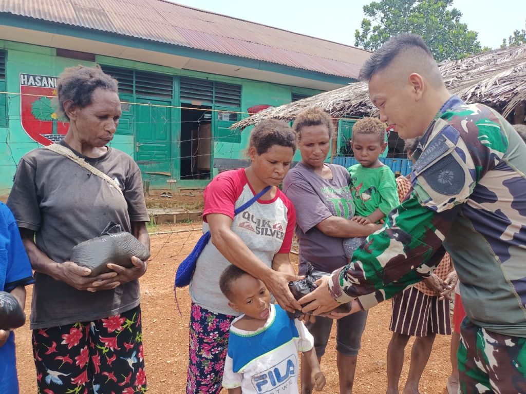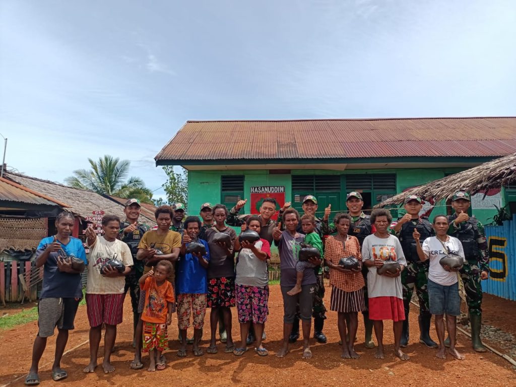 Rabu, 22 Maret 2023, Satgas Pamtas RI-PNG Yonif 725/Woroagi yang berada di bawah naungan Komando Korem 174/ATW, Pos Kombut berbagi kebahagian dengan membagikan sembako kepada masyarakat di wilayah Perbatasan yang dilaksanakan di Kampung Kombut, Distrik Kombut, Kab. Boven Digoel.