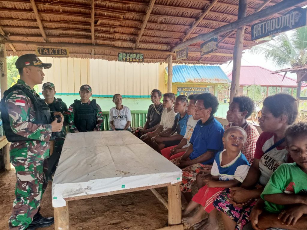 Kamis, 23 Maret 2023, Guna mencegah peredaran miras dan narkoba, serta meningkatkan kesadaran hukum di wilayah perbatasan, Satgas Pamtas RI-PNG Yonif 725/Woroagi yang berada di bawah naungan Komando Korem 174/ATW, Pos Kombut melaksanakan kegiatan Penyuluhan Hukum dan Narkoba yang dilaksanakan di Kampung Kombut, Distrik Kombut, Kab. Boven Digoel.