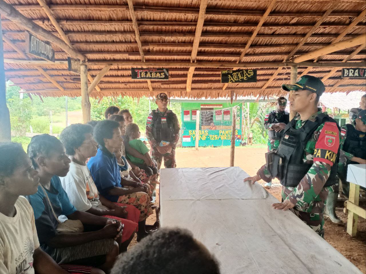 Kamis, 23 Maret 2023, Guna mencegah peredaran miras dan narkoba, serta meningkatkan kesadaran hukum di wilayah perbatasan, Satgas Pamtas RI-PNG Yonif 725/Woroagi yang berada di bawah naungan Komando Korem 174/ATW, Pos Kombut melaksanakan kegiatan Penyuluhan Hukum dan Narkoba yang dilaksanakan di Kampung Kombut, Distrik Kombut, Kab. Boven Digoel.