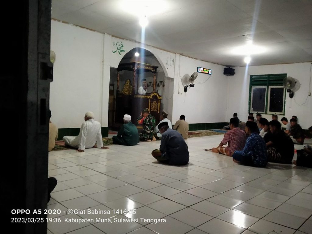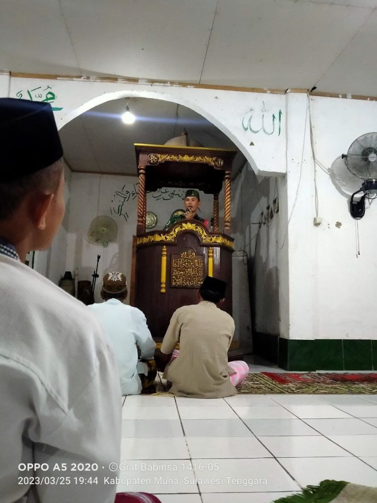 Muna-Babinsa Koramil 1416-05/Maligano Kodim 1416/Muna Serda La Ode Isran Nsabara melaksanakan Sholat Isya secara berjamaah dilanjutkan dengan membawakan ceramah agama yang berjudul “BULAN SUCI RAMADHAN MERUPAKAN KUNCI SUKSES KEDEPANNYA “, yang bertempat di Masjid An-Nur Desa Moolo Kec. Batukara Kab. Muna,(25/3/2023).