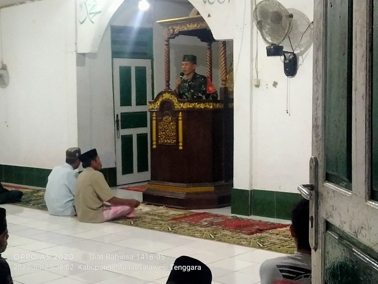 Muna-Babinsa Koramil 1416-05/Maligano Kodim 1416/Muna Serda La Ode Isran Nsabara melaksanakan Sholat Isya secara berjamaah dilanjutkan dengan membawakan ceramah agama yang berjudul “BULAN SUCI RAMADHAN MERUPAKAN KUNCI SUKSES KEDEPANNYA “, yang bertempat di Masjid An-Nur Desa Moolo Kec. Batukara Kab. Muna,(25/3/2023).