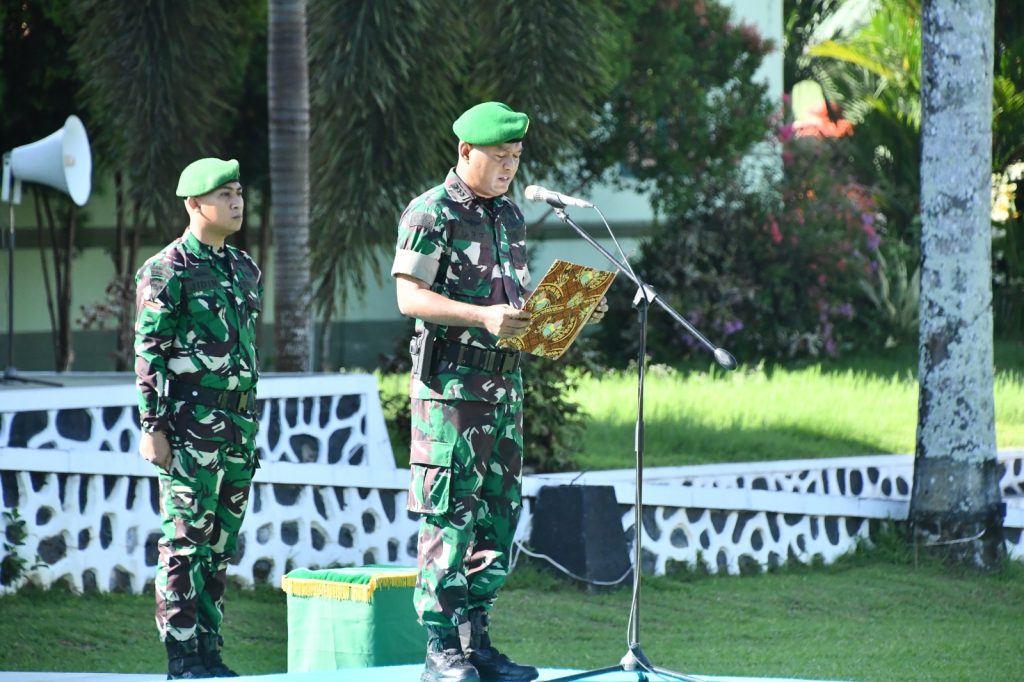 Kendari –Upacara kenaikan Pangkat perwira dan Bintara jajaran Korem 143/HO dipimpin langsung oleh Kasi Pers Kasrem 143/HO Kolonel Inf Arif Ariadi S.E di lapangan upacara Korem 143/HO