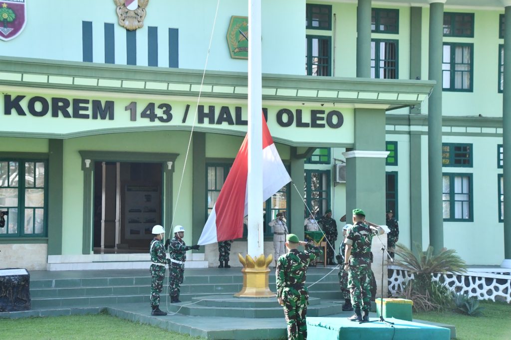“Saya menyampaikan ucapan selamat kepada personel jajaran Korem 143/HO yang telah memperoleh penghargaan kenaikan pangkat, disertai harapan agar dengan pangkat yang baru, dapat menambah semangat dan kemampuan serta menunjukan kinerja terbaik dalam melaksanakan tugas sehari-hari,”tegasnya