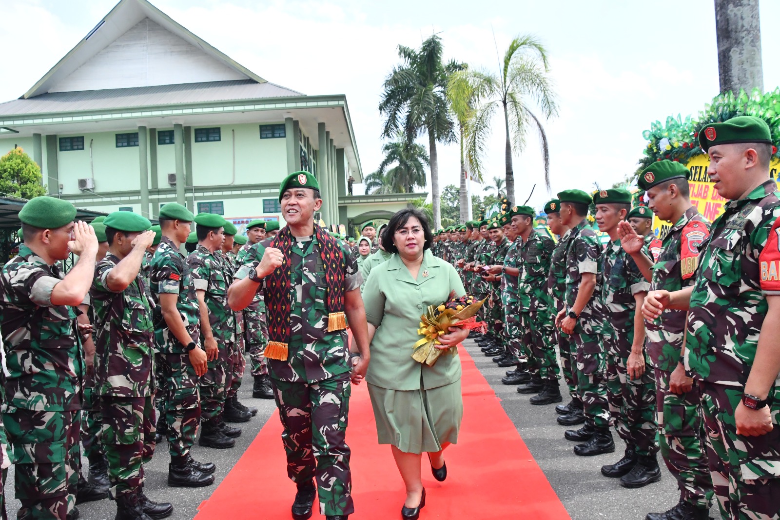 Diiringi dengan puisi Doa Ksatria Bangsa, Brigjen TNI Yufti Senjaya S.E.,M.Si dan istri didampingi Danrem 143/Haluoleo Kolonel Inf Ayub Akbar dan istri menuju tempat penugasan yang baru.