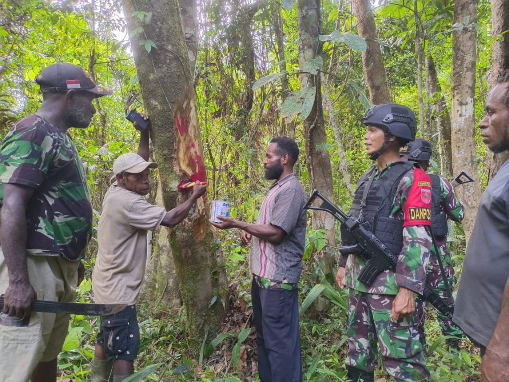 Boven Digoel – Mengutamakan Mufakat dan musyawarah guna mencapai solusi kesepakatan bersama, Anggota Satgas Pamtas RI-PNG Yonif 725/Wrg Pos 2/B Tetop yang berada dibawah naungan Kolakops Korem 174/ATW memfasilitasi mediasi warga dalam menyelesaikan permasalahan sengketa lahan batas dusun dan marga di Kp. Tetop, Distrik Iniyandit, Kab. Boven Digoel, Papua Selatan. Jumat, (14/04/2023).
