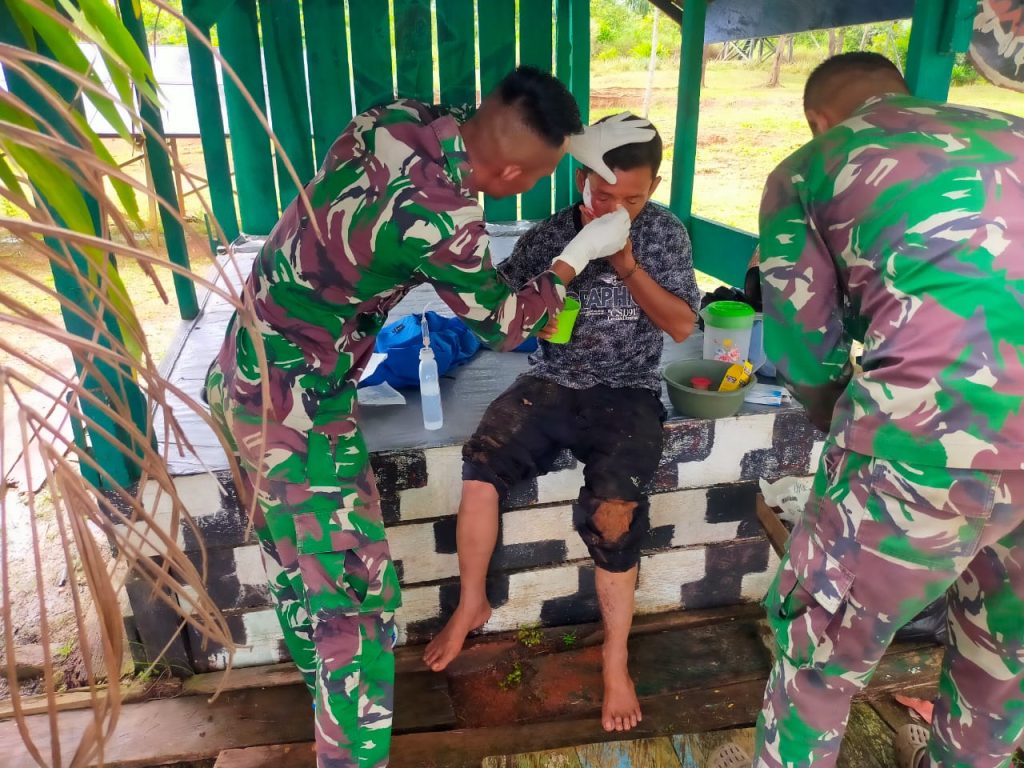 Sebelum dibawa ke puskesmas, Sdr. Sugianto (44) mengucapkan rasa terima kasih atas pertolongan yang telah diberikan prajurit Satgas Pamtas Yonif 725/Wrg.