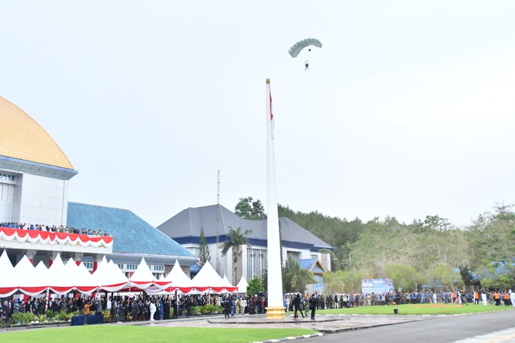 Lebih lanjut disampaikan, setelah pelaksanaan upacara peringatan HUT ke-59 Prov.Sultra, seluruh peserta dan hadirin di suguhkan dengan penampilan aksi terjun payung dan Demo udara (Fly Pass) pesawat tempur TNI AU di lapangan Upacara Kantor Gubernur Sultra.